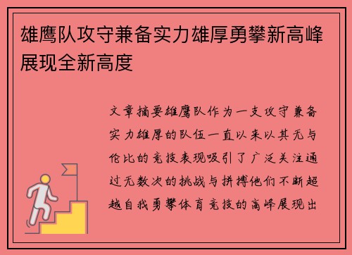 雄鹰队攻守兼备实力雄厚勇攀新高峰展现全新高度